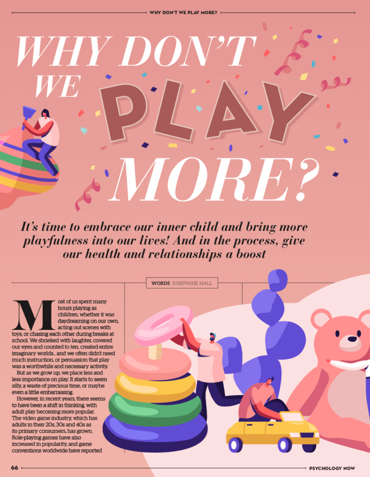 In the article, I talk about what adult play is, how it promotes learning, what the other benefits are and how we can insert more playfulness into our lives.