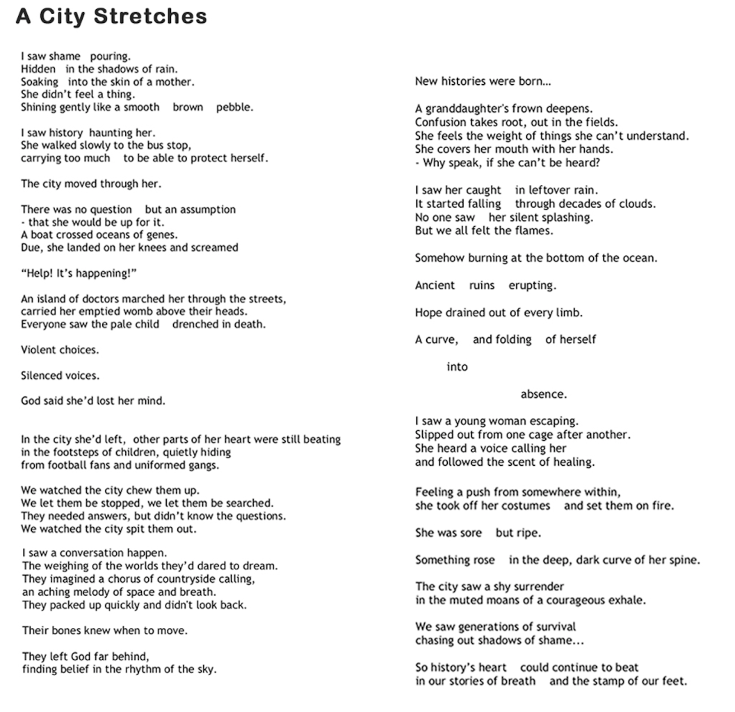After a month of workshops and exploration, I wrote a lamentation that explored healing, breath, shame and the ancestral trauma felt by racialised bodies – all themes that have been very present for me throughout the last year.